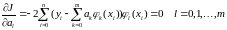 Построение наилучшего приближения сводится к классической задаче математического анализа об экстремуме функции нескольких переменных. Метод решения этой задачи известен. Необходимым условием экстремума является равенство нулю в экстремальном точке всех первых частных производных рассматриваемой функции. В случае 223 это дает