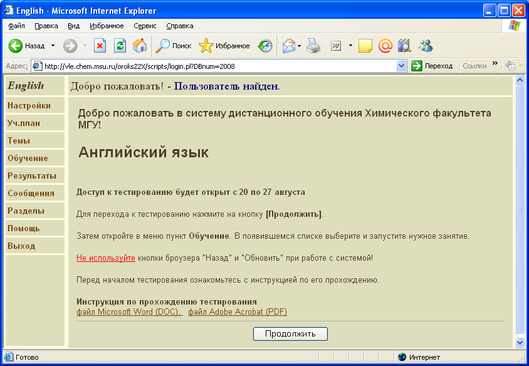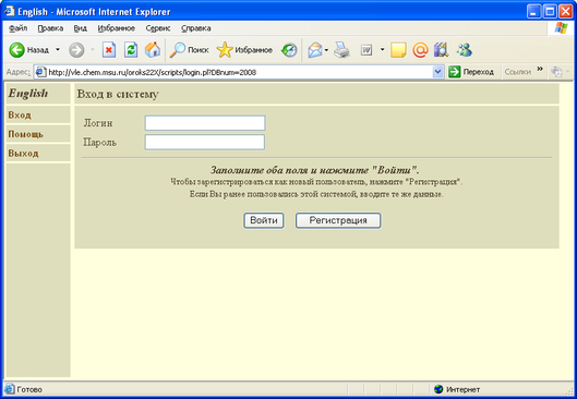 Зайдите на Интернет страницу по адресу: http://do.chem.msu.ru/rus/english/