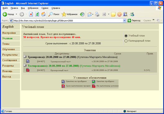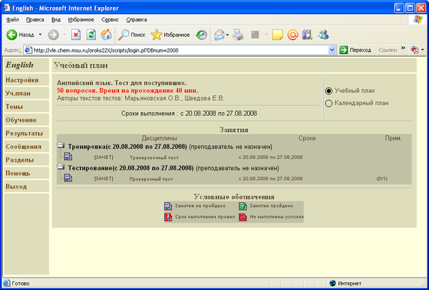 После прохождения теста «Учебный план» приобретает вид, как показано на Рис. 10.