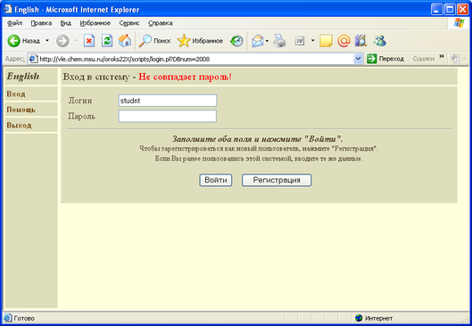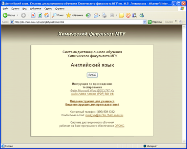Вход в систему дистанционного обучения (СДО) химического факультета МГУ 2