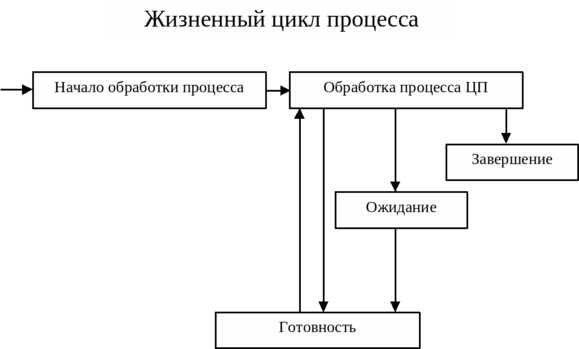Описанная схема для различных ОС может отличаться как отсутствием некоторых состояний, так и присутствием некоторых дополнительных.