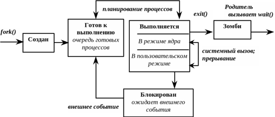 Рис. 12 Жизненный цикл процесса в ОС UNIX.