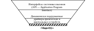И, наконец, некоторой логической вершиной рассматриваемой структуры ОС будут являться интерфейсы системных вызовов (API — Application Program Interface). Под системным вызовом будем понимать средство обращения процесса к ядру операционной системы за выполнением той или иной функции (возможности, услуги, сервиса). Примерами системных вызовов являются открытие файла, чтение/запись в него, порождение процесса и т.д. Отличие обращения к системному вызову от обращения к библиотеке программ заключается в том, что библиотечная программа присоединяется к исполняемому коду процесса, поэтому вычисление библиотечных функций будет происходить в рамках процесса. Обращение к системному вызову — это вызов тех команд, которые инициируют обращение к системе. Как уже отмечалось выше, инициацией обращения к операционной системе может служить либо прерывание, либо исполнение специальной команды. Следует понимать различие между системным вызовом и библиотечной функцией. Например, осуществляя работу с файлом, имеется возможность работы с ним посредством обращения к системным вызовам либо посредством использования библиотеки ввода-вывода. В последнем случае в тело процесса включаются дополнительные функции из данной библиотеки, а уже внутри данных функций происходит обращение к необходимым системным вызовам.
