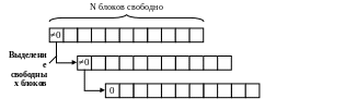 Работа с массивом номеров свободных блоков достаточно проста. При запросе на получение свободного блока происходит поиск в первом блоке массива ячейки с содержательной (ненулевой) информацией, обнуление найденной ячейки, а блок с найденным номером выдается в ответ на запрос. Если же происходит обнуление последней ячейки блока, ссылающейся на следующий блок массива, то предварительно содержимое этого блока загружается в суперблок и используется уже как первый блок этого массива. Если же какой-то блок освобождается, то выполняются противоположные действия в обратном порядке.