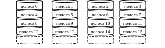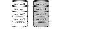RAID-системы предполагают размещение на разных устройствах, составляющих RAID-массив, порции данных фиксированного размера, называемые полосами, которым осуществляется обмен в данных системах. Размер полосы зависит от конкретного устройства (при обсуждении файловых систем была упомянута иерархия различных блоков, так RAID добавляет в эту иерархию дополнительный уровень — уровень полос RAID).