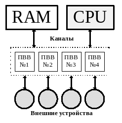 При рассмотрении схемы работы компьютера мы говорили о том, что взаимодействие с внешними устройствами осуществляется через центральный процессор с помощью устройства управления внешними устройствами. Мы выделили два режима работы CPU с внешними устройствами: