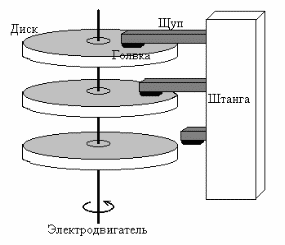 Штанга имеет механически перемещаемые щупы, на концах которых находятся считывающие и записывающие головки. В большинстве конструктивных решений количество этих щупов равно количеству дисков (считывается либо верхняя, либо нижняя поверхность).