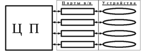 бщая шина - универсальный интерфейс для подключения новых устройств (Мы можем легко подключать большое количество устройств разных типов), но при этом при работе с общей шиной часто случаются ситуации, когда шина занята или перегружена. При этом происходит деградация всей ВС в целом. При работе с портами мы можем достичь большей эффективности за счет независимости каждого из них. Но с другой стороны порты не столь универсальны как шина. Они имеют ограничения на возможности подключения того или иного устройства. Количество портов задается обычно конструктивным (или что встречается реже - конфигурационным) образом.