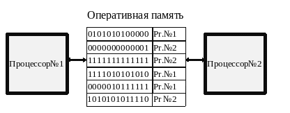 Управление разделяемыми ресурсами. Имеется набор ресурсов, доступ к которым в определенные моменты времени организуется от имени различных процессов. ОС должна иметь функцию, обеспечивающую корректное управление пересекающимися ресурсами. Заметим, что управление разделяемыми ресурсами есть большая проблема. В описанной нами ситуации с принтером все тривиально решается (организуется очередь заданий принтера), т.к. нам не нужно обеспечить оперативный доступ к ресурсу (принтеру). Но когда дело касается таких ресурсов как оперативная память решение данной проблемы с помощью очереди заданий «не пройдет». ВС будет сильно деградировать, и не о каком мультипроцессировании не может быть и речи. Доступ к ОЗУ - проблема не только мультипрограммирования, это проблема актуальна также и для машин, работающих на базе нескольких процессоров. Одно из решений проблемы разделенного доступа к ОЗУ - использование семафоров или дополнительных ячеек ОЗУ. Информация, записанная в этих дополнительных ячейках, будет говорить о принадлежности того или иного фрагмента памяти определенному процессорному устройству. Заметим, что в случае работы на нескольких процессорах возникает также необходимость переосмысления схемы работы cache-буферов т. к. при работе с cache содержимое реальной RAM часто не соответствует тому, что там должно находится. При этом решение «У каждого процессора свой КЭШ» не подходит, и появляется необходимость организации общего КЭШа.