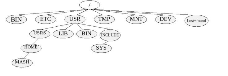 Давайте рассмотрим структуру файловой системы с точки зрения пользователя. Эта структура будет рассматриваться для обобщенной операционной системы UNIX, так как реальная ее структура может варьироваться.