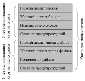 Для каждого из этих ресурсов определяется 2 квоты : на блоки и на файлы.