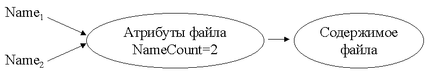 . В этом случае имя файла выносится на некоторый отдельный уровень из атрибутов, и получается, что есть содержимое файла, есть атрибут файла и может быть произвольное количество имен. Более того, эти имена могут размещаться в различных каталогах, если есть иерархическая ФС. Т.е. тем самым нарушается древообразность ФС