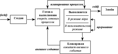 Выше упоминалось о нестандартном формировании некоторых процессов в Unix. Речь шла о процессе начальной загрузки системы и нестандартном формировании двух специфических процессов с PID 0 и 1.