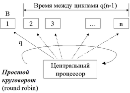 • Вначале q=B, далее q=B+t,…, до q=A. Уменьшение накладных расходов на переключение задач, когда несколько задач выполняют длительные вычисления.
