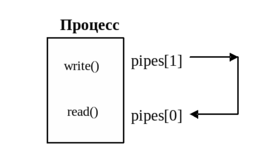 Один процесс может использовать канал только для себя – как здесь показано, будет фактически осуществлятся пересылка данных самому себе – из одной переменной в другую.