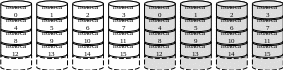 (Используется дополнительное устройство, где размещена избыточная информация – формула, связывающая данные с каждого диска.)
