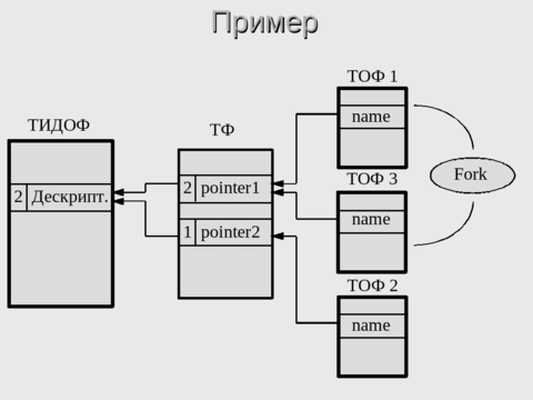 Свяжем ещё один ИД – значит, в ТИДОФ должно быть 2 – значит, с файлом работает 2 процесса, у каждого свой указатель чтения/записи. Освобождаем ИД – получаем там 0. Возникает проблема надёжности. Но прикаждом изменении ИД мы не сбрасываем содержимое на диск, т.е. они периодически не соответствуют друг другу. Поэтому в ОС существует параметр, позволяющий ОС периодически сбрасывать информацию на диск. Это можно сделать и вручную.