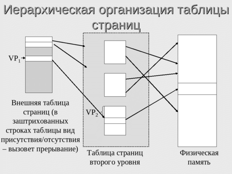 Размеры таблицы страниц – иерархическая организация таблицы страниц.