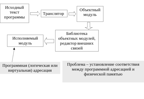 Так как в исполняемом модуле используется программная адресация, то ОСе приходится устанавливать соответствие между физическими и программными адресами.