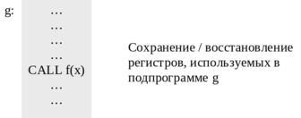 программное сохранение/восстановление содержимого регистров при обработке прерываний
