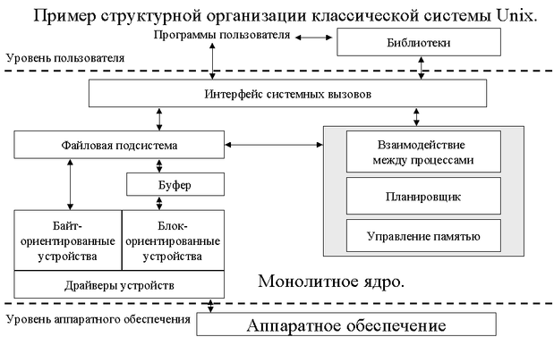Это пример ОС с монолитным ядром. Такими операционными системами были Mach, ранние UNIX. Рассмотрим альтернативу этой архитектуры: