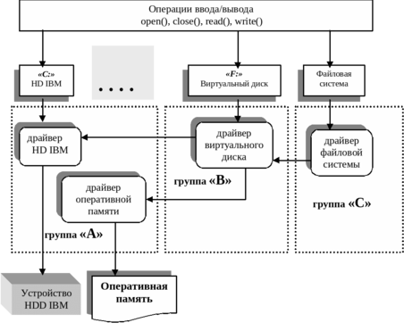 Драйвер логического устройства определенного типа – обобщает интерфейсы драйверов физических устройств этого типа => унификация обращения.