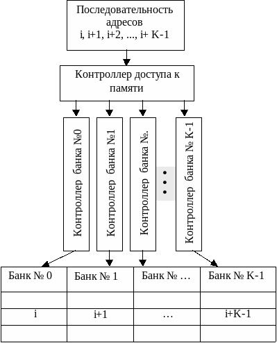ОЗУ делится на К независимых банков памяти, где К = 2L