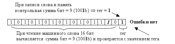 разряды контроля четности машинного слова (при записи машинного слова подсчет числа единиц в коде машинного слова и дополнение до четного или нечетного в контрольном разряде), при чтении контроль соответствия;