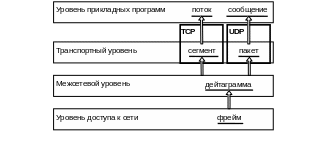 Как отмечалось выше, каждый из уровней взаимодействует с соседними уровнями в соответствии с теми или иным протоколами порциями данных, имеющими специфичными для каждого уровня названия. Так, для межсетевого уровня пакет называется дейтограммой.