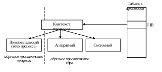 Говоря о различных механизмах, происходящих в системе, часто затрагивался термин контекст процесса. Под контекстом процесса мы будем понимать совокупность данных, характеризующих актуальное состояние процесса. Обычно контекст процесса состоит из нескольких компонент: