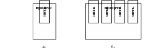 Типы процессов: однонитевая (а) и многонитевая (б) организации.