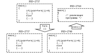 Новый процесс наследует почти все атрибуты исходного родительского процесса, за исключением идентификационной информации (т.е. у дочернего процесса, в частности, свой идентификатор PID и иной идентификатор родительского процесса). Среди прочего дочерний процесс наследует открытые отцовским процессом файлы. На это свойство в ОС Unix опираются многие механизмы. Хотя необходимо отметить, что наследуются необязательно все открытые файлы: если некоторый файл открывался в специальном режиме, то при формировании дочернего процесса этот файл для него будет автоматически закрыт.