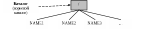 Вся информация в файловой системе представляется в виде дерева, имеющего корень. Это т.н. корневая файловая система. В узлах дерева, отличных от листьев, находятся каталоги, которые содержат информацию о размещенных в них файлах. Иерархические файловые системы обычно имеют специальный тип файлов-каталогов. Т.е. каталог представляется не как отдельная выделенная структура данных, а как файл особого типа. Листом дерева может быть либо файл-каталог, либо любой файл файловой системы.