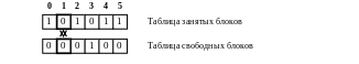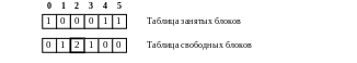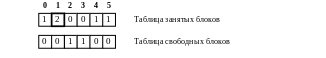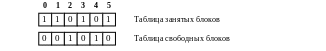 Рассмотрим модельный пример. В системе формируются две таблицы, каждая из которых имеет размеры, соответствующие реальному количеству блоков файловой системы. Одна из таблиц называется таблицей занятых блоков, вторая — таблицей свободных блоков. Изначально содержимое таблиц обнуляется.