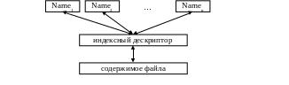 Для каждого индексного дескриптора существует, по меньшей мере, одно имя, зарегистрированное в каталогах файловой системы. И еще раз повторимся, сказав, что, говоря о древовидности файловой системы, то понимают древовидности не с точки зрения размещения файла, а с точки зрения размещения имен файлов.