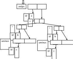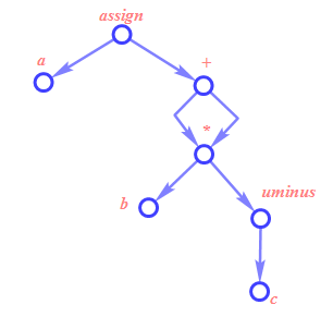 Рис. 5.1. Синтаксическое дерево для инструкции a := b * -c + b * -c.