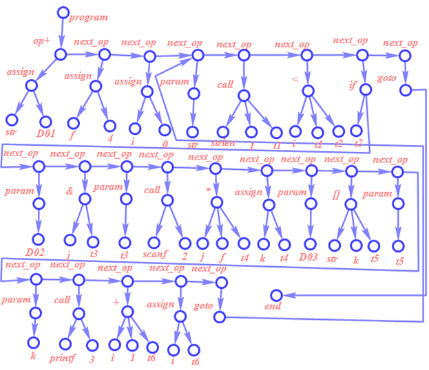 Рис. 5.6. Представление оптимизированного промежуточного кода в виде дага