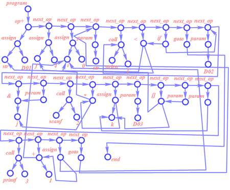 Вид дага совпадает как для троек, так и для косвенных троек в силу специфики собственно дага и его представления в трехадресном коде.