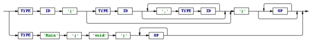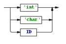| | <P> ::= <H> [ <B>… ] <H> ::= [‘h’] (‘t’ ‘i’)… <B> ::= [‘b’] ( [‘,’] ‘b’)… ‘;’ |