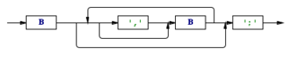 | | <P> ::= [ <H> ] <B> <H> ::= ‘h’ (‘t’ ‘i’)… <B> ::= ‘b’ (‘,’ ‘b’)… ‘;’ |