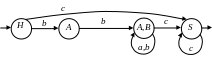 a b с { H } { B } { S } { B } { A, B } { A, B } { A, B } { A, B } { S } { S } { S }