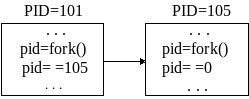 Здесь процесс с PID=105 создается процессом с PID=101.