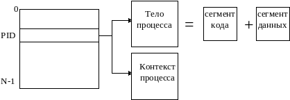 Мы говорили о том, что вторым по значимости понятием в операционной системе (ОС) является понятие процесса. Процесс - сущность, которая определяется по-разному. Это может быть - “упорядоченный набор команд и принадлежащих ему ресурсов”. С точки зрения ОС UNIX, процесс - это объект, зарегистрированный в специальной таблице процессов. Структура этой таблицы следующая: она позиционна (как практически и все таблице в UNIX), то есть номер записи в таблице - есть идентификатор процесса “PID”. Формируются процессы с 0 до N-1, где N - предельное число процессов, которые система может одновременно обрабатывать. Это параметр настройки ОС.