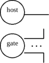 Это хост-компьютеры (host) и шлюзы (gate). В двух словах покажем, что есть что. Реально, каждый из компьютеров, который работает в сети, может классифицироваться по двум признакам. Если в компьютере расположена только одна сетевая карта или интерфейс, то это хост-компьютер и обычно он принадлежит какой-нибудь одной сети. Если в компьютере находятся две и более сетевых карт, при этом каждая из карт подключается к своей сети, то такой компьютер называется компьютером-шлюзом. Соответственно, через шлюзы можно объединять сети.
