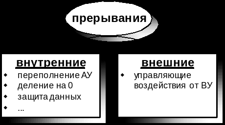 Прерывания можно разделить на две группы внутренние и внешние.