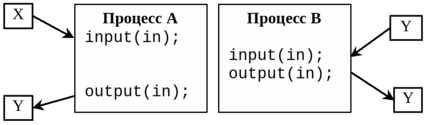 В этом случае символ, считанный процессом А, был потерян, а символ, считанный процессом В, был выведен дважды. Результат выполнения процессов здесь зависит от того, в какой момент осуществляется переключение процессов, и от того, какой конкретно процесс будет выбран для выполнения следующим. Такие ситуации называются гонками (race conditions) между процессами, а процессы – конкурирующими. Единственный способ избежать гонок при использовании разделяемых ресурсов – контролировать доступ к любым разделяемым ресурсам в системе. При этом необходимо организовать взаимное исключение – т.е. такой способ работы с разделяемым ресурсом, при котором постулируется, что в тот момент, когда один из процессов работает с разделяемым ресурсом, все остальные процессы не могут иметь к нему доступ.