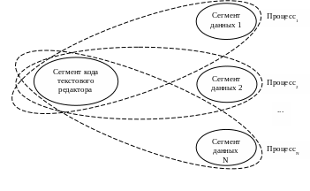 Например, при функционировании терминального класса одновременно могут быть сформированы несколько копий текстового редактора. В этом случае сегмент кода у всех процессов, соответствующих редакторам, будет единый, а сегменты данных будут у каждого процесса свои.