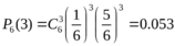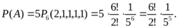 Решение. Пятикратное бросание кости можно рассматривать как последовательность независимых испытаний с вероятностью успеха («шестерки») равно 1/6 и вероятностью неудачи — 5/6. Искомую вероятность найдем по формуле