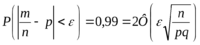 Используя интегральную формулу Муавра-Лапласа можно вычислить вероятность того, что частота появления успеха в n независимых испытаниях Бернулли (т.е. число m/n) отклонится от вероятности успеха не более чем на положительную величину :