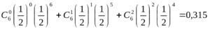 Задача 2. Монета бросается 6 раз. Найти вероятность того, что герб выпадет не более, чем 2 раза.